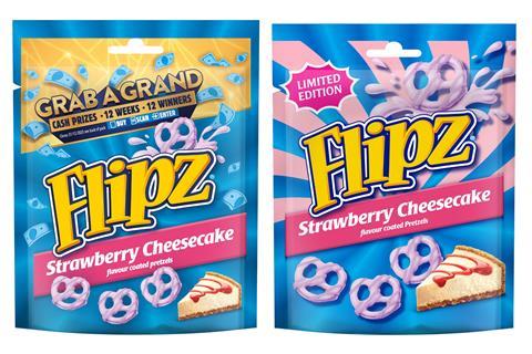 Pladis is to expand its fast-growing snack brand Flipz with the introduction of the limited edition Strawberry Cheesecake Flavour Coated Pretzels, as well as relainching its popular Grab A Grand competition.