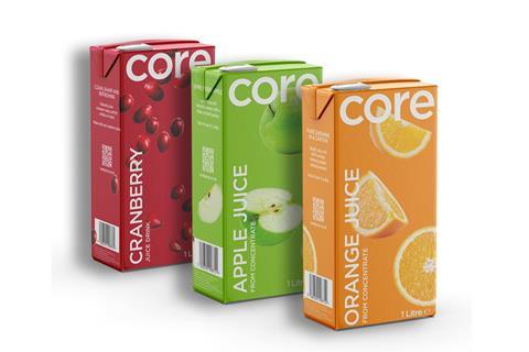Core Orange and Core Apple are made from 100% juice from concentrate with no additives. While Core Cranberry offered a “sharper, sweet-tart profile”, ideal for shoppers looking for a versatile juice for home mixing as well as standalone consumption, said the wholesaler.